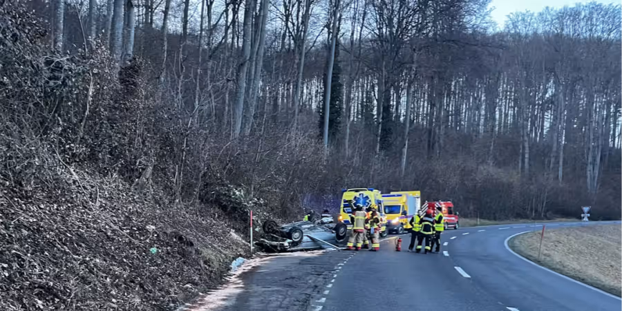 Am Donnerstagabend stürzte ein Auto in Mühlethurnen BE eine Böschung hinab und überschlug sich. Der Fahrer wurde verletzt ins Spital gebracht.