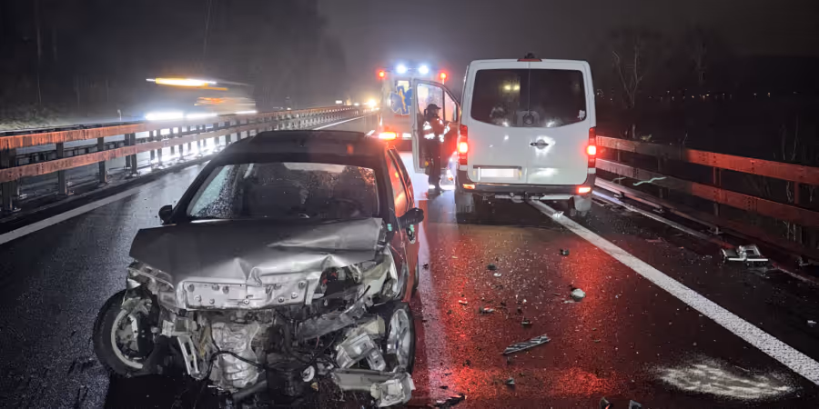 Der 35-jährige Autolenker wurde beim Unfall leicht verletzt. Der Rettungsdienst brachte ihn anschliessend zur Kontrolle ins Spital. Die Lieferwagenfahrer im Alter von 27, 32 und 54 Jahren blieben unverletzt.