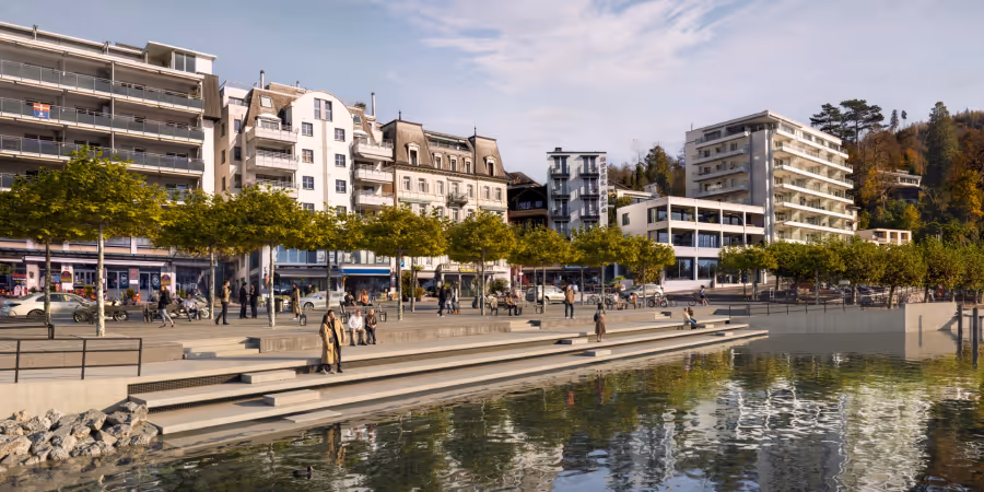 Damit kann die 2. Etappe (Schiffländeplatz bis Bellevuequai) nun definitiv gebaut werden. Die Bauarbeiten sollen Ende August 2026 in Angriff genommen und per Sommer 2027 abgeschlossen werden können.