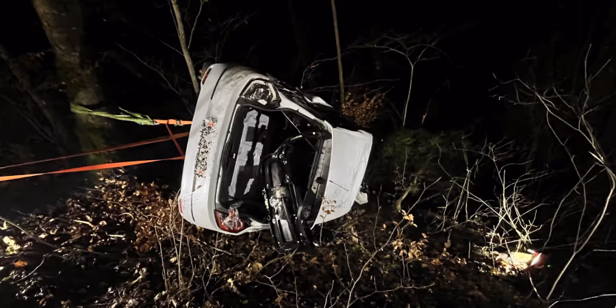 Gemäss den bisherigen Erkenntnissen der Polizei Basel-Landschaft fuhr eine 56-jähriger Personenwagenlenker von Rünenberg kommend in Richtung Rümlingen. Aus noch ungeklärten Gründen kam er dabei von der Fahrbahn ab und kollidierte mit der Böschung auf der rechten Strassenseite. Anschliessend überquerte das Fahrzeug die Fahrbahn und rutschte in der Folge die abfallende Böschung in den Wald hinunter. Dort kam der weisse Renault auf der Seite liegend zum Stillstand.