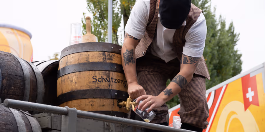 Am ersten Freitag, 10. Oktober, wird die Schützengarten-Crew um circa 12.00 Uhr zwischen dem Olma-Haupteingang und dem Schützengarten-Barwagen Halt machen und gemeinsam mit Rico Zindel, Geschäftsführer der Säntis Gastronomie AG, das Fass anstechen.
