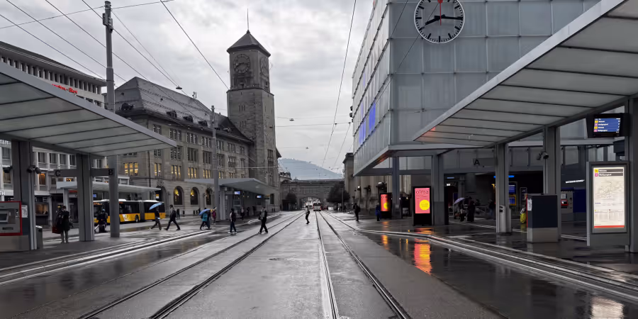 Am Dienstagmorgen, um 7.10 Uhr, fuhr ein Lieferwagen in westlicher Richtung über den Bahnhofplatz in St. Gallen.