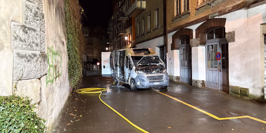 Kurz nach vor 5.55 Uhr wurde an der Wallstrasse in der Stadt St. Gallen ein Fahrzeugbrand gemeldet. Die Einsatzkräfte von Stadt- und Kantonspolizei St. Gallen sowie der örtlichen Feuerwehr trafen einen Lieferwagen in Vollbrand an.