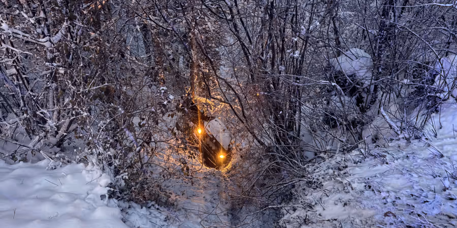 Um 6.45 Uhr kam ein Autofahrer auf der Heinrichsbadstrasse aufgrund der schneebedeckten Fahrbahn von der Strasse ab und rutschte rund 15 Meter in ein Waldstück.