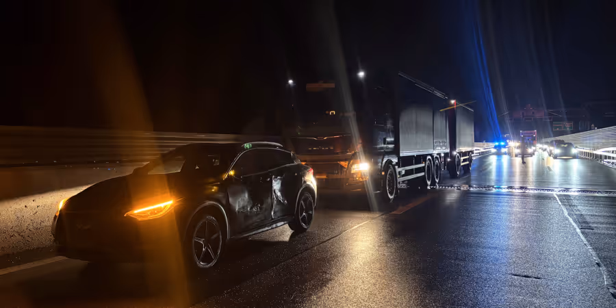 Als der 64-Jährige mit seiner Lastwagenkombination vom mittleren Fahrstreifen auf den Normalstreifen wechseln wollte, kollidierte diese mit dem Auto des 63-Jährigen.