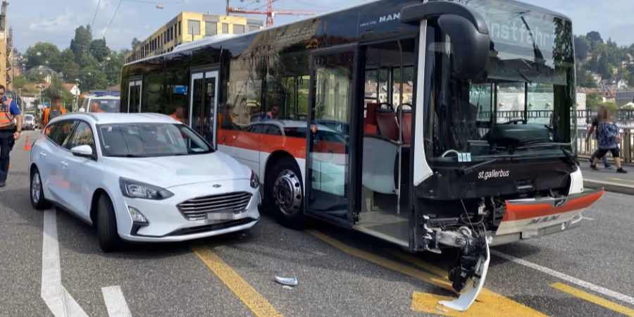 Am Dienstag kam es zu einer Kollision in St. Gallen zwischen einem Bus und einem Personenwagen. Zwei Personen haben sich unbestimmt verletzt.