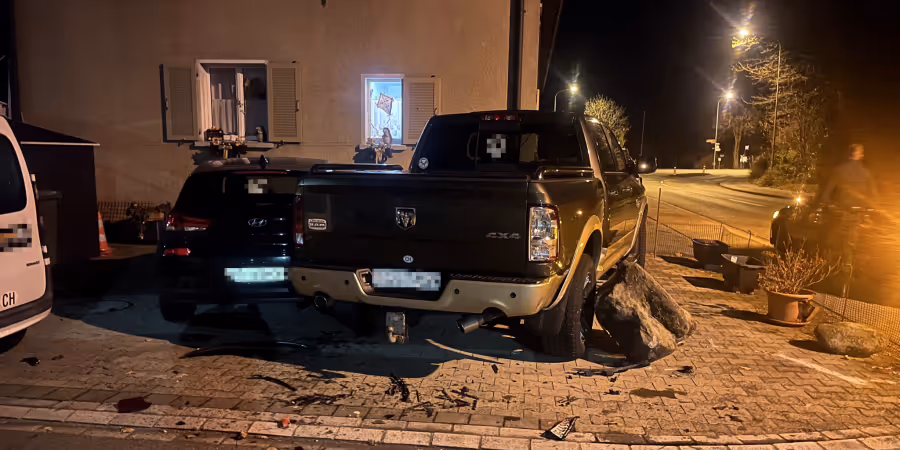 In der Nacht auf Freitag kollidierte ein fahrunfähiger Autofahrer (32) in Widnau SG mit einem Begrenzungstein und parkierten Autos. Es entstand Sachschaden.