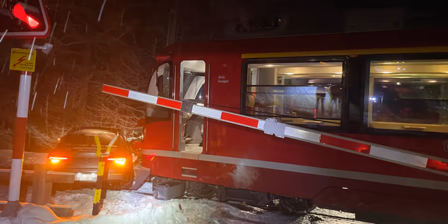Nachdem ein Auto mit Sommerreifen auf eine Bahntrassee in Pontresina GR rutschte, kam es am Sonntag zu einer Kollision zwischen dem Auto und einem Zug.