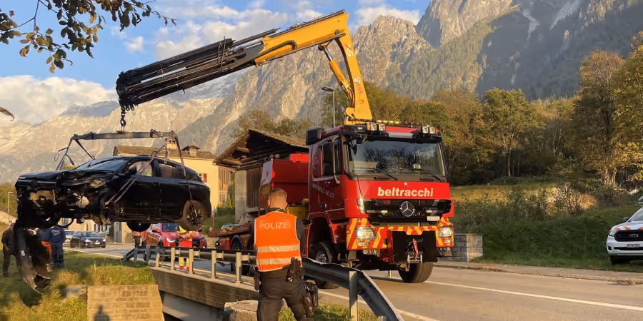 Am Donnerstag stürzte eine Familie mit dem Auto in Stampa GR in einen Bachdurchlass. Drei Personen, darunter ein Kleinkind, wurden verletzt.