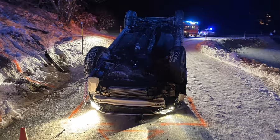 In der Nacht auf Samstag hat sich ein Auto bei einem Selbstunfall in Susch GR überschlagen und landete auf dem Dach. Der Fahrer (47) wurde leicht verletzt.