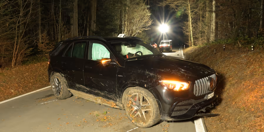 In der Folge geriet das Auto des Schweizers zuerst rechtsseitig, dann linksseitig an das Waldbord, kollidierte mit einem Baum und kam stark beschädigt auf der Strasse zum Stillstand. Der Fahrer konnte das Fahrzeug unverletzt verlassen.