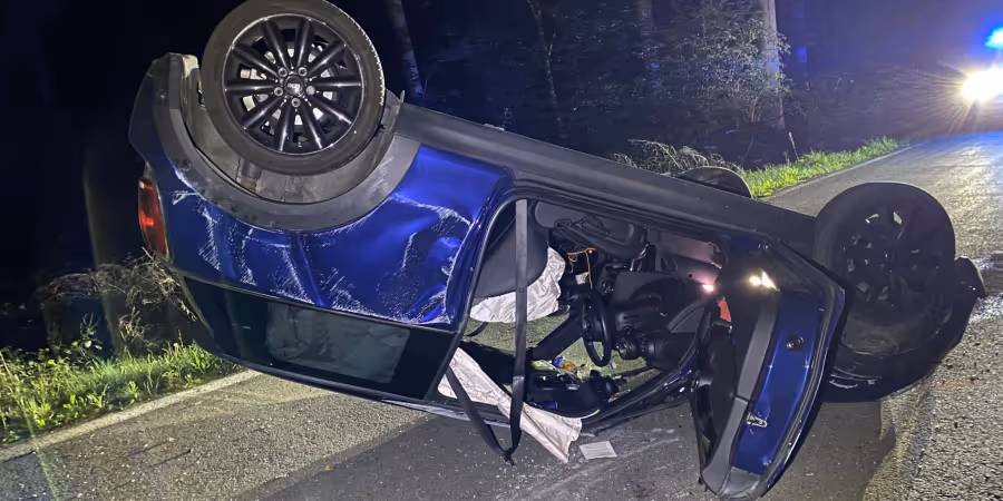 Am Auto entstand Totalschaden. Der Unfallwagen blockierte die schmale Nebenstrasse. Bis die Unfallstelle um 23 Uhr geräumt war, leitete die Feuerwehr den Verkehr um.