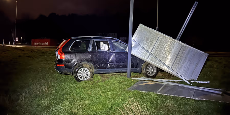 Betrunken kam ein Lenker in Suhr AG von der Strasse ab und prallte gegen eine Werbetafel. Während niemand verletzt wurde, entstand erheblicher Sachschaden.