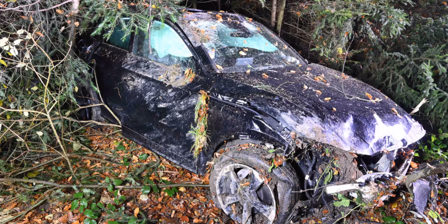 Anschliessend kippte das Auto eine Böschung hinunter und überschlug sich mehrfach. Der Fahrer und seine Mitfahrerin blieben unverletzt. Der Gesamtsachschaden beträgt rund 50'000 Franken.