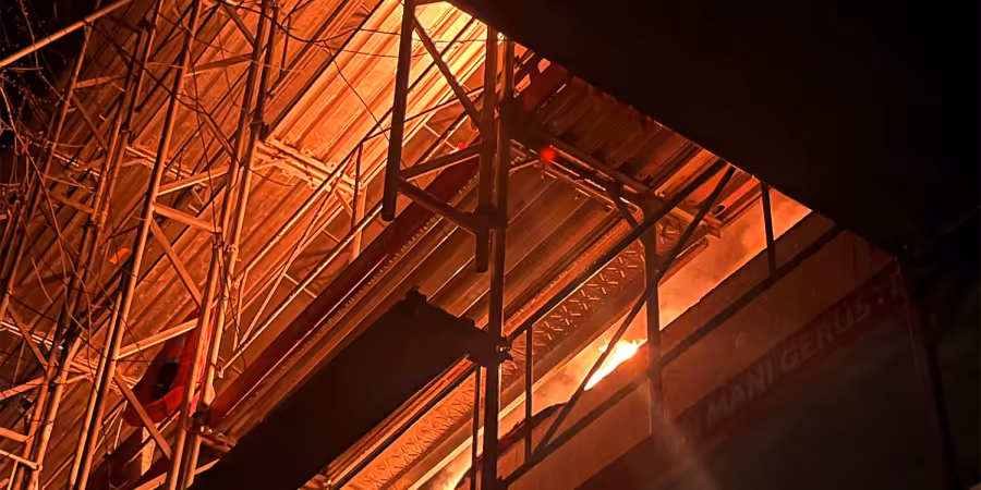 Die rasch vor Ort eingetroffenen Ereignisdienste stellten das Feuer im dritten Obergeschoss (Dachstock), der im Umbau befindlichen Liegenschaft fest.