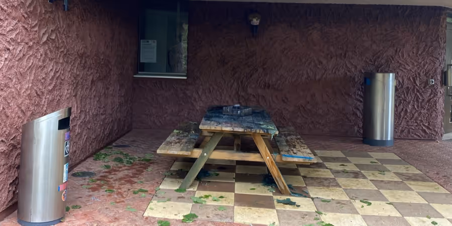 Bei der Ökumenischen Kirche in Flüh SO geriet am Sonntag, 28. September 2025, ein unter dem Vordach stehender Holztisch in Brand. Dabei entstand Sachschaden.