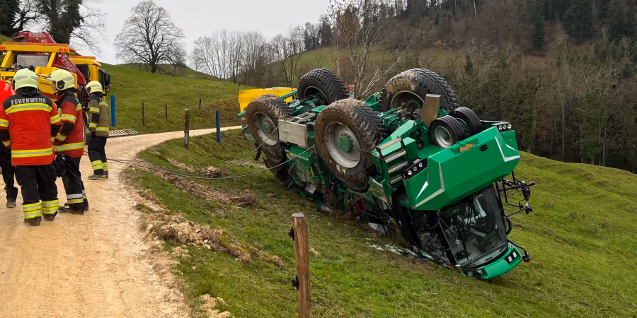 Am Montag, um circa 7.45 Uhr, war ein Mann mit einem Arbeitskarren (Holzhackmaschine) vom Wasserberg bei Bärschwil unterwegs Richtung Tal. Mutmasslich aufgrund von Glatteis auf dem landwirtschaftlichen Weg kam der Arbeitskarren ins Rutschen. In der Folge kam das Fahrzeug vom Weg ab und überschlug sich.