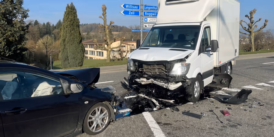 Dabei kam es zu einer Kollision mit einem Auto, das von der Altbürerstrasse in Richtung St. Urban fuhr. Die Autofahrerin und der Lieferwagenlenker wurden beim Unfall verletzt und durch den Rettungsdienst 144 ins Spital gebracht.