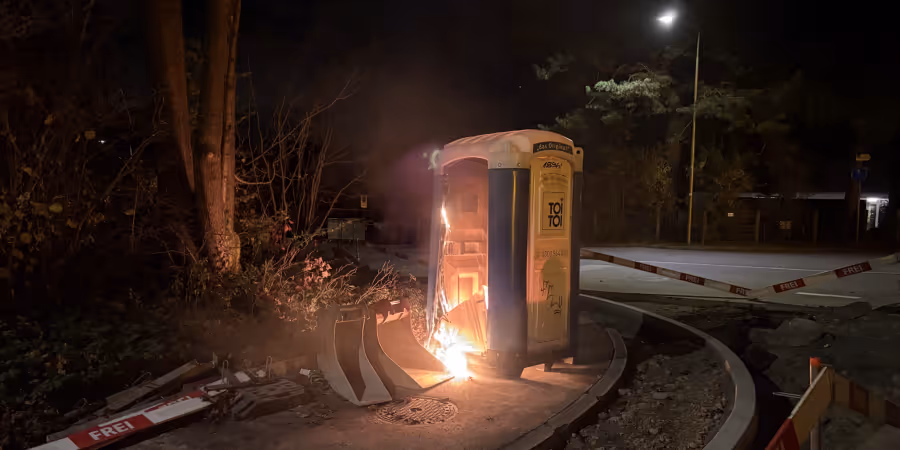 Am Samstag, kurz vor 18 Uhr, ging bei der Stadtpolizei Winterthur die Meldung über ein brennendes «Toi Toi WC» ein. Die sofort ausgerückte Patrouille traf auf einer Baustelle an der Stockerstrasse auf ein brennendes mobiles WC-Häuschen («ToiToi»).