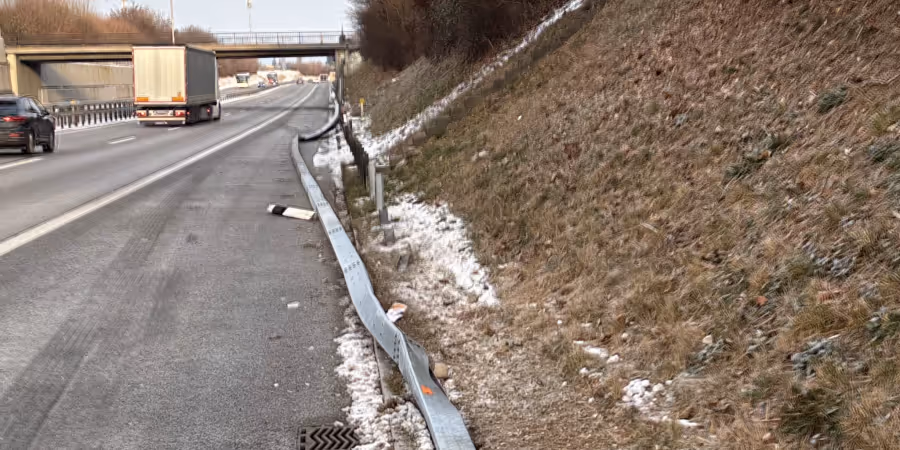 Ort des Geschehens war die A2 in Fahrtrichtung Basel auf Höhe von Brittnau. Dort fand die Kantonspolizei Aargau die massive Randleitplanke auf einer Länge von rund 50 Metern aus der Verankerung gerissen und niedergedrückt.