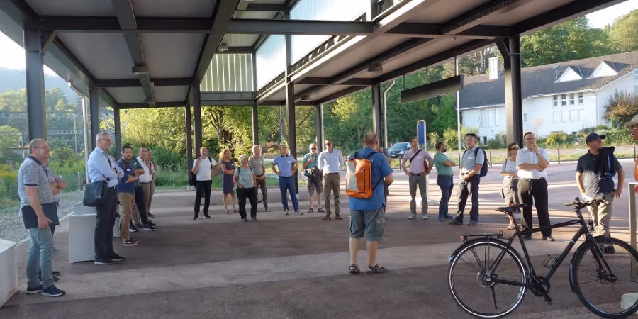 An der Ostseite des Bahnhofs wurden anschliessend die neue Ankunftshalle und die neu gestaltete Velo-Erschliessung, ein Teilstück der geplanten Velovorzugsroute, besichtigt. Die Initiative zu diesem Projekt ging von der Firma Franke aus, die sich auch finanziell massgeblich beteiligte.