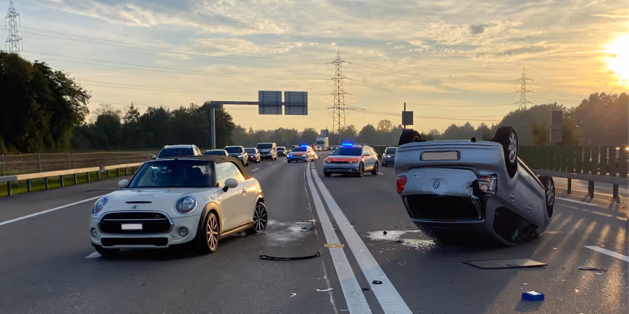 Baar ZG: Auto landet nach Auffahrkollision auf A14 auf dem Dach