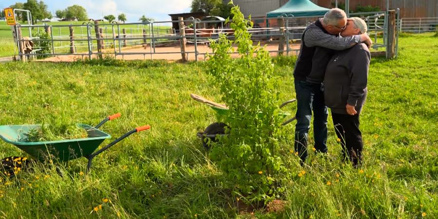Denn beim Einpflanzen des Baumes, den Röbi ihr geschenkt hat, kommt es zum zweiten Kuss. Sozusagen die «Bezahlung» für das Geschenk mit Wurzeln.