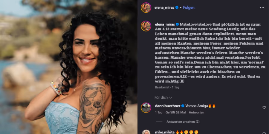 Bevor die Datingshow startet, zeigt der Streamingdienst «RTL+» im November die neue Doku «Elena Fucking Miras – Mutter, Reality-Star, Single?». Laut «RTL» gewährt die dreiteilige Serie tiefe Einblicke in das Privatleben der Influencerin.