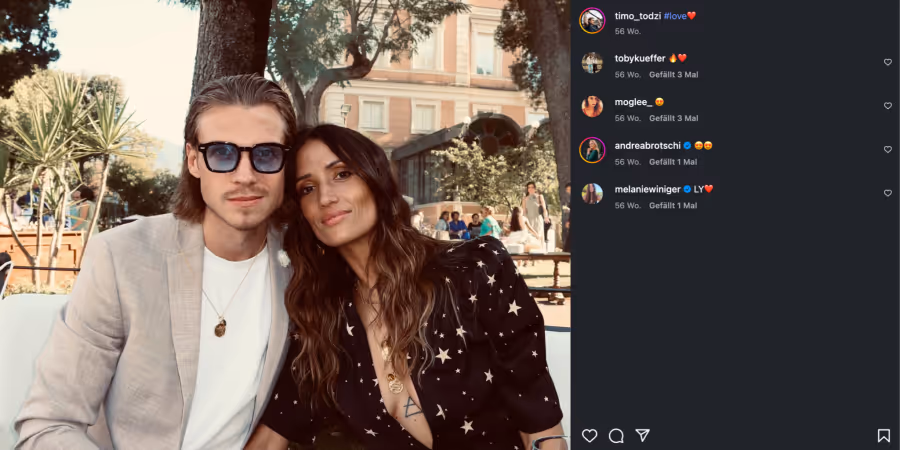 Todzi ist 15 Jahre jünger als Winiger, spielt leidenschaftlich Fussball, wie «Bluewin» berichtet. Winiger ist seit über 20 Jahren eine der bekanntesten Schweizer Moderatorinnen und Model.