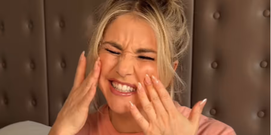 Doch dann beginnt die Schlagersängerin plötzlich, wilde Grimassen zu schneiden. Huch!