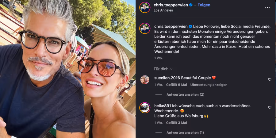 Wie «Web.de» berichtet, hatte Töpperwien bereits Anfang Oktober auf Instagram grössere Veränderungen in seinem Leben angekündigt. Seine Fans rätselten über die Bedeutung, nun ist klar: Der Rückzug aus dem TV zählt dazu.