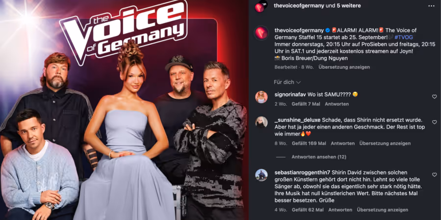 Ab dieser Woche gibt es zudem eine weitere Änderung: So wird The Voice of Germany 2025 nur noch einmal die Woche ausgestrahlt, schreibt «TV Digital».