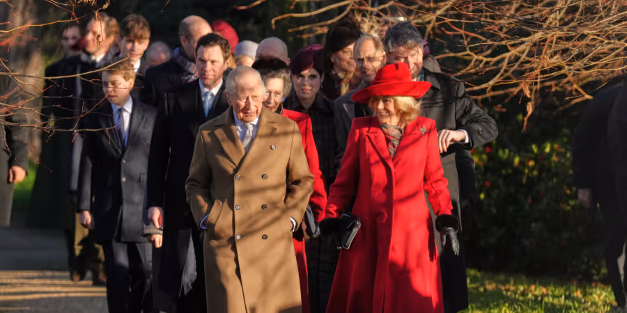 Zu den Feiertagen hatte Charles die Familie traditionell nach Sandringham eingeladen, am Nachmittag wird seine Weihnachtsbotschaft im Fernsehen ausgestrahlt. Die Geschenke wurden aufgrund der deutschen Wurzeln der Royals bereits an Heiligabend ausgepackt – anders als bei vielen Familien im Vereinigten Königreich, bei denen der 25. Dezember der Tag der Bescherung ist.