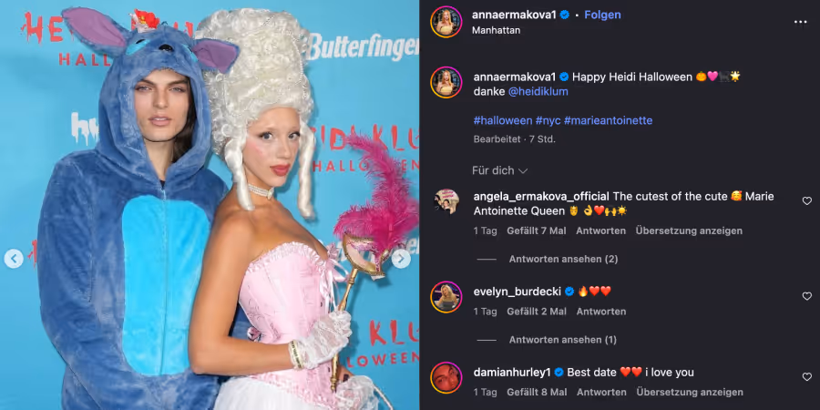 Anna Ermakova erschien zum ersten Mal auf Heidi Klums legendärer Halloween-Party in New York. Die Tochter von Boris Becker wählte für diesen Anlass ein imposantes Marie-Antoinette-Kostüm mit barocken Stilelementen.