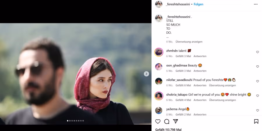 Das raue gesellschaftliche Klima kennt Fereshteh gut, ein Muster, das sich mit ihrer wachsenden Bekanntheit auf Social Media fortsetzt. «Früher haben sie mich oft verletzt, aber nicht mehr», sagt sie und erzählt, wie sie gelernt hat, die Online-Angriffe nicht mehr an sich heranzulassen. Inspiration findet sie bei ihrem Ehemann, der sie antreibt und ehrgeiziger macht. «Als ich ihn vor der Kamera sah, dachte ich: Was wäre, wenn ich das auch könnte?»