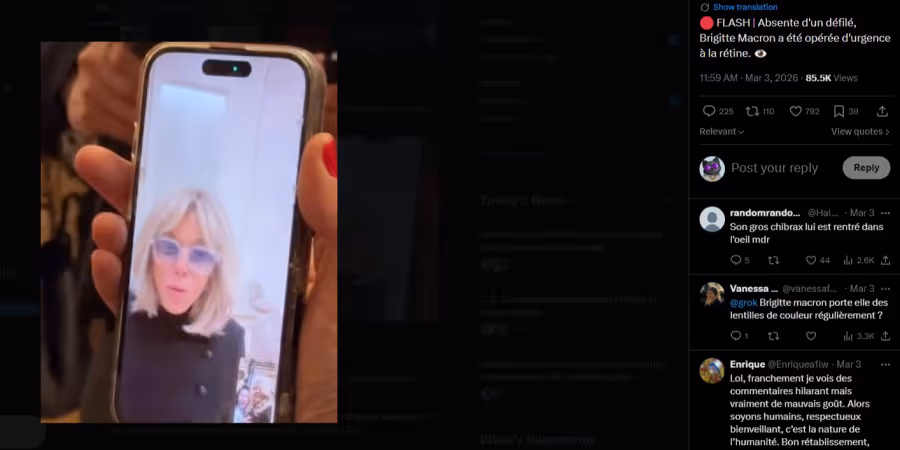 Damit sorgte sie bei den Gästen für einen kleinen Überraschungsmoment. Der Auftritt erinnerte manche Beobachter an ihren Ehemann: Emmanuel Macron hatte sich beim Weltwirtschaftsforum in Davos ebenfalls mit einer auffälligen Sonnenbrille gezeigt, nachdem er eine Augenentzündung gehabt hatte.