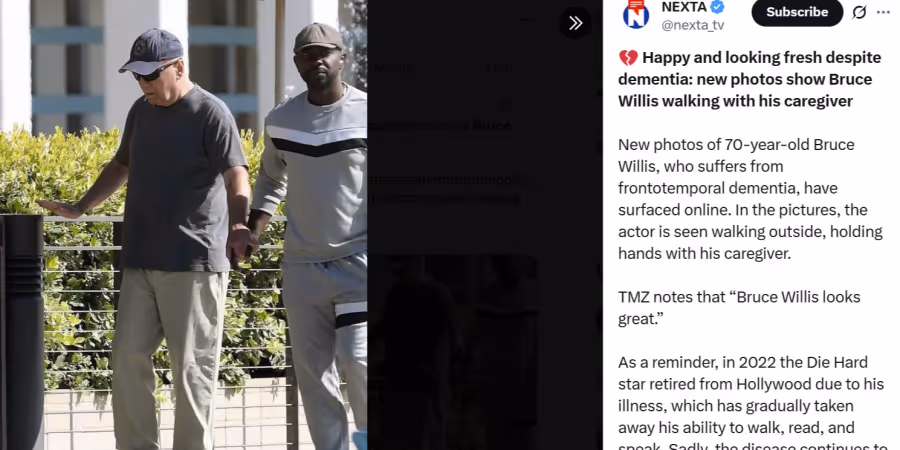 Seit seiner Diagnose mit frontotemporaler Demenz lebt Bruce Willis weitgehend abgeschirmt von der Öffentlichkeit. Der Schauspieler, der sich 2022 aus dem Filmgeschäft zurückzog, wohnt inzwischen in einem speziell auf seine Bedürfnisse ausgerichteten Haus. Dort wird er von Pflegepersonal rund um die Uhr betreut.