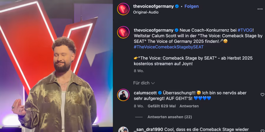 Die Kombination aus Gänsehautmoment und unerwarteter Wendung macht die Folge laut «Promiflash» zu einem Highlight der Staffel. Am Ende seines Auftritts enthüllt Calum Scott den Coaches, dass er selbst nun eine Rolle im Wettbewerb übernimmt.