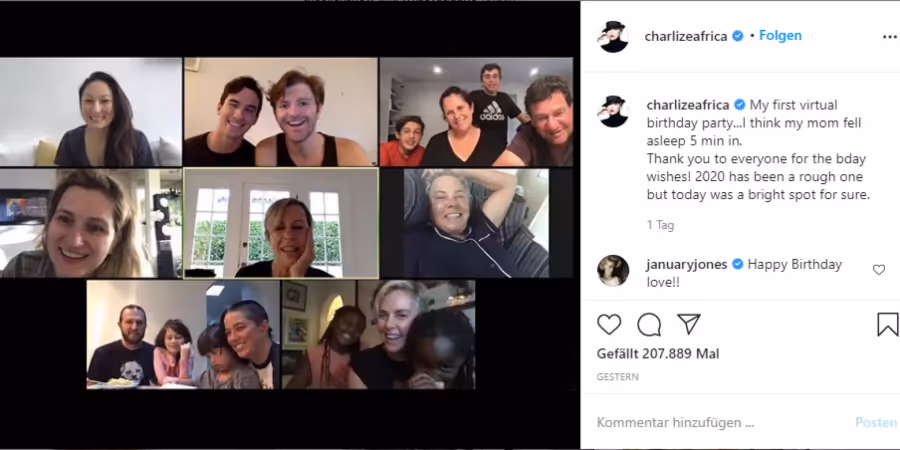 Die Hollywood-Schauspielerin Charlize Theron feierte am 7. August ihren 45. Geburtstag. Anlässlich des besonderen Tages postete sie auf Instagram ein Schnappschuss, welches aus einer Videokonferenz gemacht wurde. Darunter schrieb Theron: