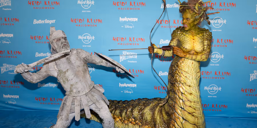 2025 zeigte sich Heidi Klum in einer besonders aufwendigen Verwandlung. Sie trat als Medusa auf, samt sich bewegenden Schlangen am Kopf, gespaltener künstlicher Zunge und einem langen Schlangenschwanz.