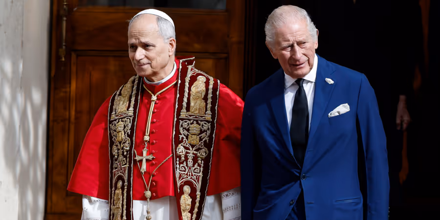 Charles und seine Frau Camilla sind derzeit auf Staatsbesuch im Vatikan. Es ist der erste Besuch des britischen Königspaares in dem kleinen Kirchenstaat seit Leos Wahl zum Pontifex im vergangenen Mai.