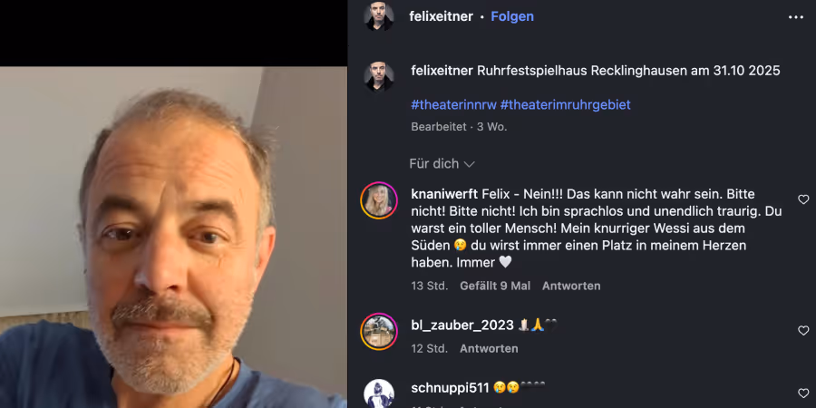 Der bekannte deutsche Schauspieler Felix Eitner ist am 8. November 2025 im Alter von nur 58 Jahren gestorben. Das bestätigte die ZAV-Künstlervermittlung München im Namen seiner Familie, die um Diskretion bat.