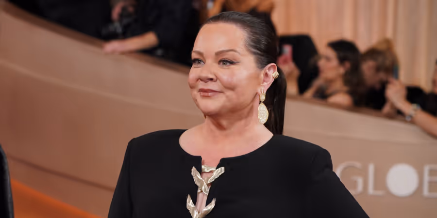 Die Schauspielerin Melissa McCarthy überrascht bei den Golden Globes 2026 mit einem schlanken Look im hautengen schwarzen Kleid.