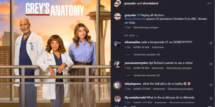 «Grey's Anatomy» Staffel 22 startet im Oktober 2025