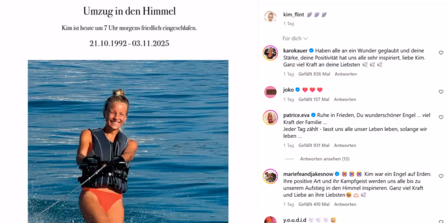Der Tod von Kim Flint löste grosse Betroffenheit aus. Prominente wie Healthy Mandy und Moderatorin Patrice Aminati bekundeten öffentlich ihr Beileid, berichtet der «Focus».