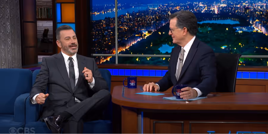 Mit heruntergelassener Hose erfuhr Jimmy Kimmel, dass ABC seine Show absetzt. Bei Stephen Colbert erzählte er die absurde Szene.