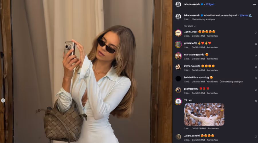 Als vermeintlich neue Partnerin von Tennis-Star Jannik Sinner ist Laila Hasanovic aktuell in den Schlagzeilen. Sie ist bekannt als Model und Influencerin.