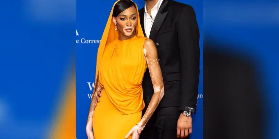 - Winnie Harlow zeigte sich auf dem roten Teppich in Washington mit einem orangenen Kleid.