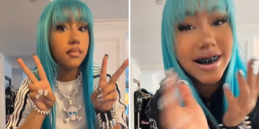 Neues Tiktok-Video, neuer Auftritt: North West überrascht auf Social Media mit Piercing, schwarzen Grills und türkisfarbenen Haaren.