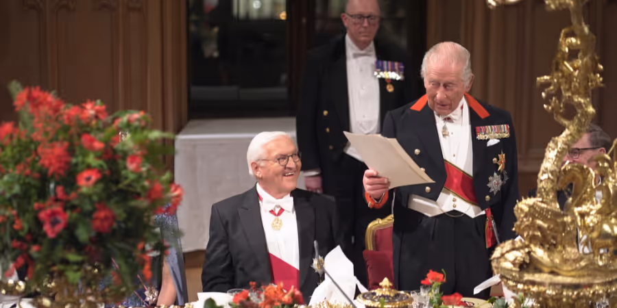 In einer Ansprache mit viel britischem Charme und Humor hat König Charles III. zu noch engeren Beziehungen zwischen Deutschland und Grossbritannien aufgerufen. Der britische Monarch spannte in seiner teils auf Deutsch vorgetragenen Rede beim Bankett zum Staatsbesuch von Bundespräsident Frank-Walter Steinmeier einen Bogen vom frühen Mittelalter bis zur Gegenwart – und sparte dabei nicht mit Lob und kleinen Seitenhieben.